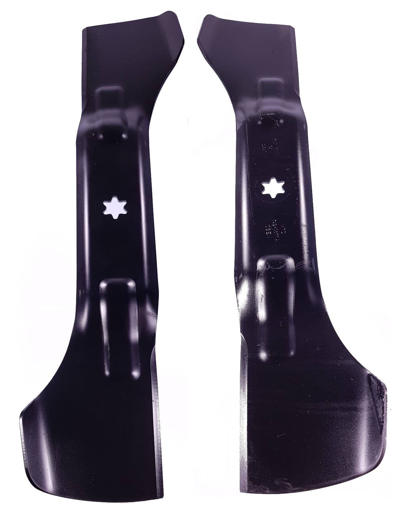 Komplet oryginalnych noży zbierających lewy i prawy do traktorka MTD dla decku 105cm z koszem mocowanie gwiazda.
